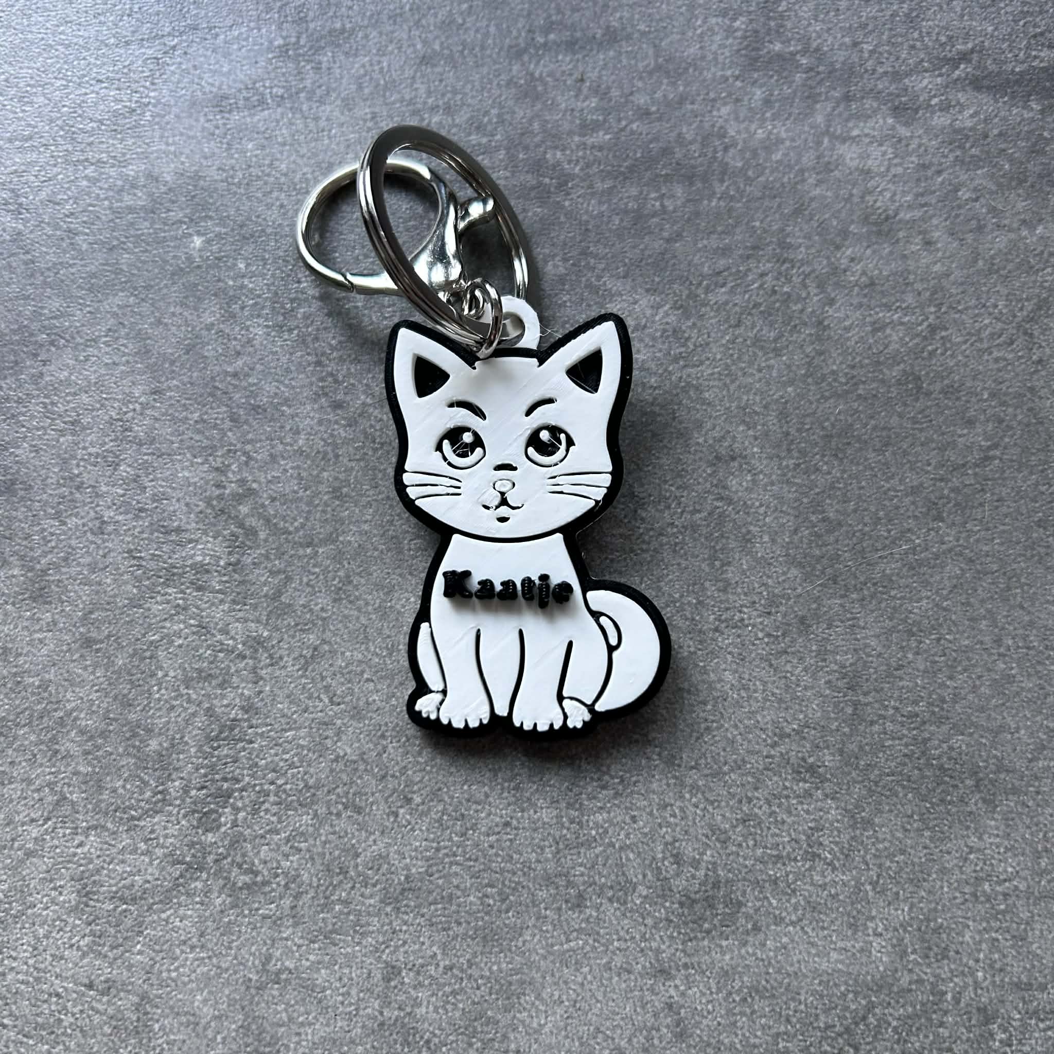 Sleutelhanger hartje met poes die we kunnen personaliseren